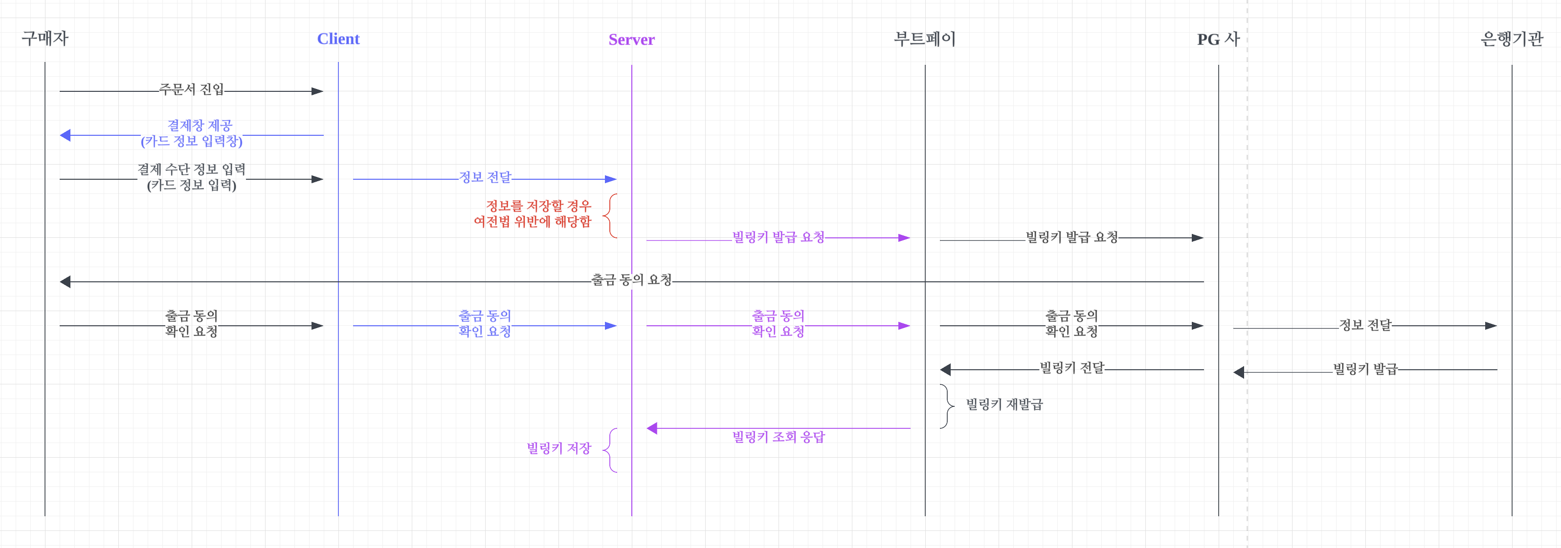 가맹점은 고객의 계좌 정보를 직접 저장할 수 없으며, 이를 저장하면 여전법 위반이에요. 따라서 은행기관은 계좌 정보를 대체할 수 있는 빌링키를 발급하며, 가맹점은 이 빌링키를 저장 후 사용해야 해요.