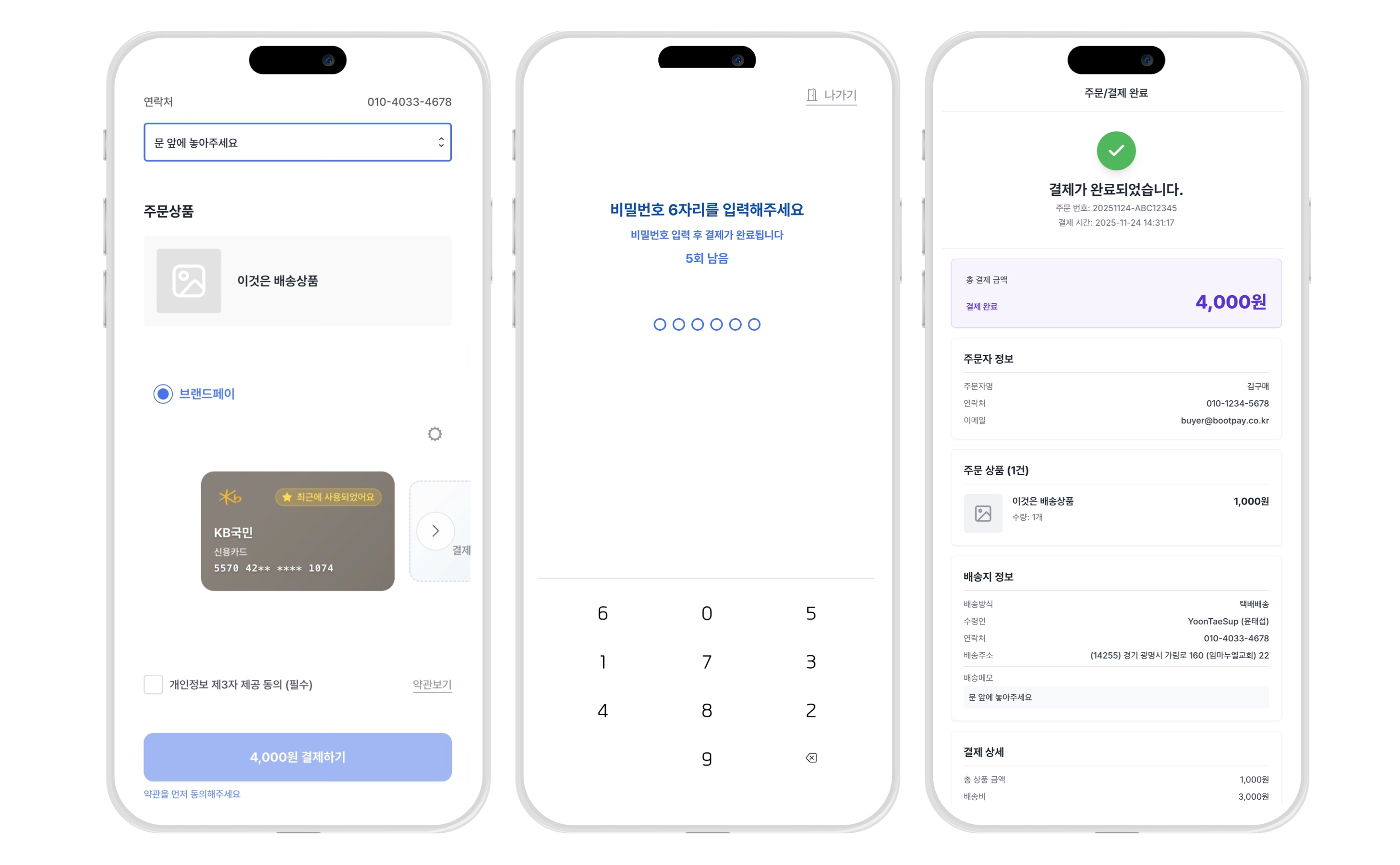 결제위젯에서 편리하게 브랜드페이를 설정하고 운영할 수 있어요. 가맹점만의 간편결제 서비스를 통해 재방문 고객의 결제 경험을 향상시키세요. 미리 등록한 결제수단으로 비밀번호만으로 빠르게 결제할 수 있습니다.